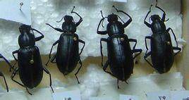步甲虫是鞘翅目、肉食亚目、步甲科的通称。世界已知约2.5 万种,中国约800种以上。体长1~60 毫米,一般中等大小,色泽幽暗,多为黑色、褐色,常带金属光泽,少数色鲜艳,有黄色花斑;体表光洁或被疏毛,有不同形状的微细刻纹。步甲虫和虎甲虫一样,都是一种善于奔跑的甲虫,一旦受惊,就会立刻迈开6条有力的细腿,“蹬蹬蹬”跑出好长一段距离,感到安全后才会停下来。