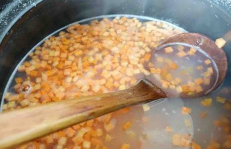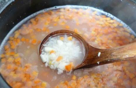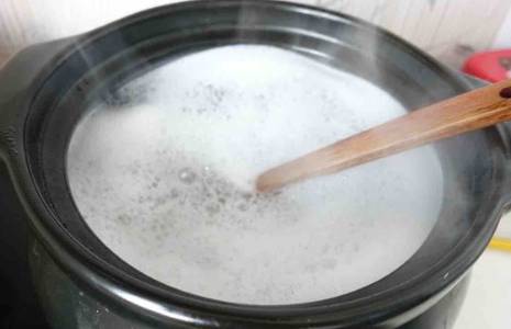 9、30分钟后,米软烂,锅内米汤呈糊状即可,加入少量食盐,就可以出锅了