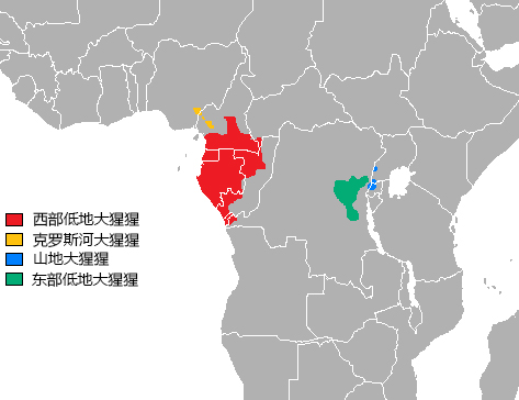 根据所栖息的环境不同,东部大猩猩又可以分成山地大猩猩和东部低地大猩猩,而西部大猩猩也一样,可以分成克罗斯河大猩猩和西部低地大猩猩。