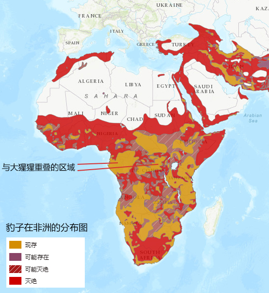 在栖息地上,豹子的生境与东、西部大猩猩的生境存在很大的重叠,这就意味着在野生环境下,豹子与大猩猩完全有相遇的可能,而且几率很大。
