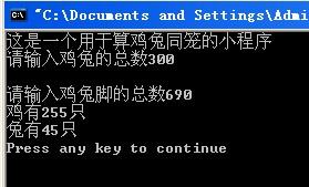 printf("这是一个用于算鸡兔同笼的小程序\n请输入鸡兔的总数");