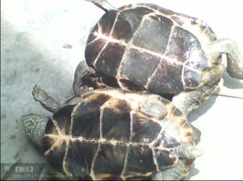 注意雄性乌龟成熟后全身变成黑色(即墨龟),而雌性乌龟则还是原来棕褐色体色。