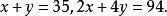 今有雉兔同笼,上有三十五头,下有九十四足,问雉兔各几何?