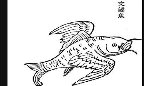 鱼,状如鲤里,鱼身而鸟翼,苍文而白首赤喙,常行西海,游于东海,以夜飞。其音如鸾鸡,其味酸甘,食之已狂,见则天下大穰。
