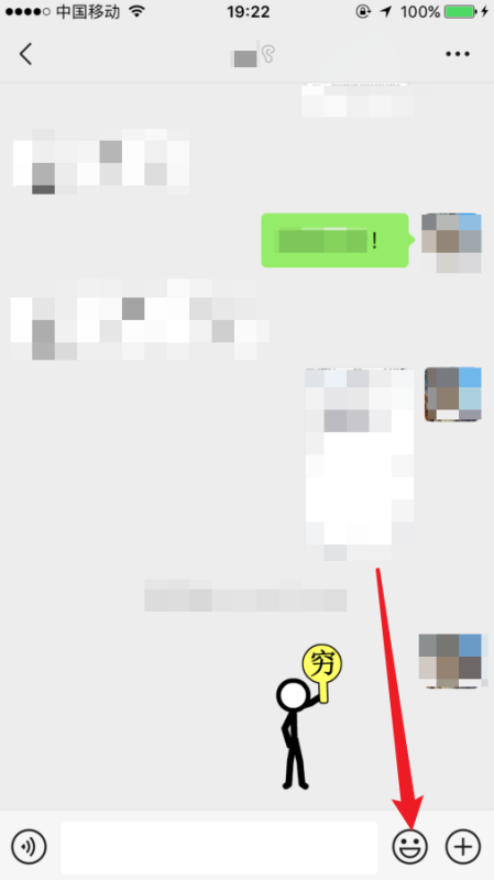 3、进入聊天窗口后点击笑脸按钮。如下图所示: