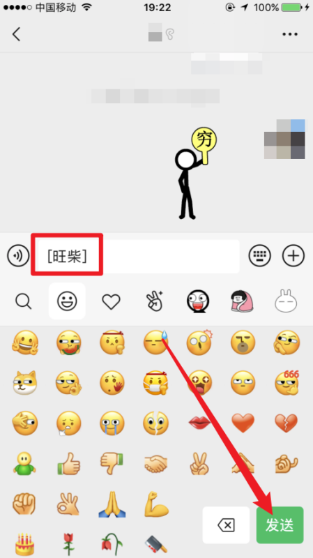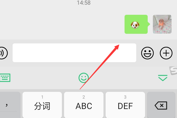 4、在点击该表情以及发送以后即可看到已经在手机微信上输入了狗头表情了。