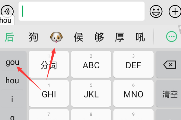 4、手机输入gou,然后选择狗头。如下图所示: