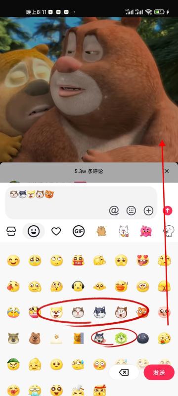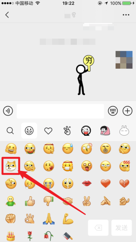 5.向上滑动屏幕,找到狗头表情,点击,就可以打出狗头了