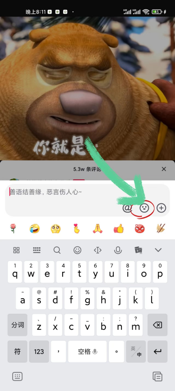 4.点击“@”旁边的“笑脸”