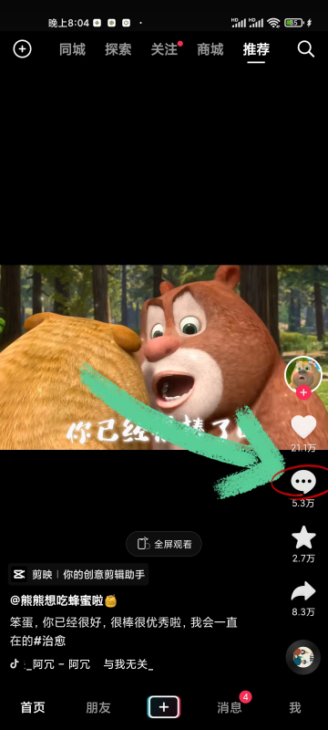 1.打开手机抖音,找到要评论的作品