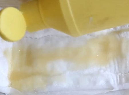1、首先往卫生巾上倒上洗洁精。