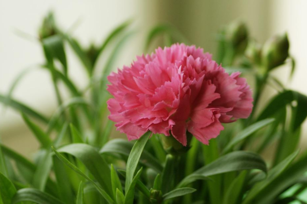 想要延长康乃馨的花期,就需要在康乃馨花芽分化之前给予它充足的光照,光照能够让康乃馨进行光合作用,累积开花的养分。如果光照不住,花朵开的会比较小、比较弱。