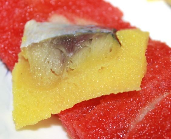“希鲮鱼籽”其实不是一种鱼的鱼籽,而是青鱼配以蟹子的一件合成品。一般多用于寿司店及自助餐厅。