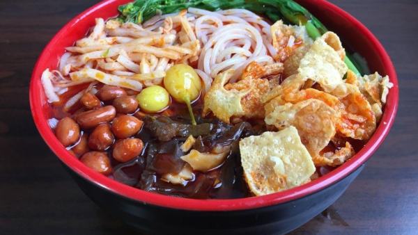 螺蛳粉是广西壮族自治区柳州市的特色小吃之一,具有辣、爽、鲜、酸、烫的独特风味,是柳州最具地方特色的名小吃。螺蛳粉的味美还因为它有着独特的汤料,汤料由螺蛳、山奈、八角、肉桂、丁香、多种辣椒、等天然香料和味素配制而成。