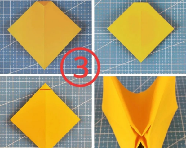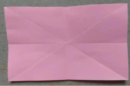 四:沿着中线折,正反一共折四下,又变成棱形;