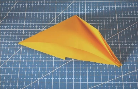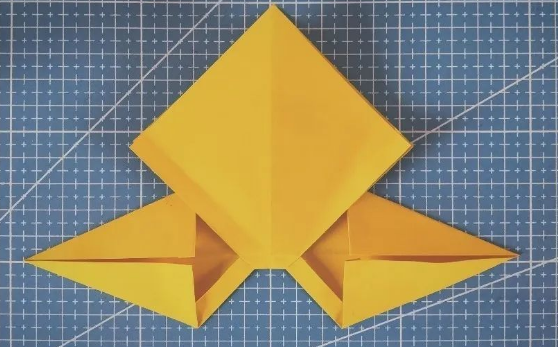 六:把裁剪好的面,再翻过来对齐,左右两边如图折出箭头的样子;