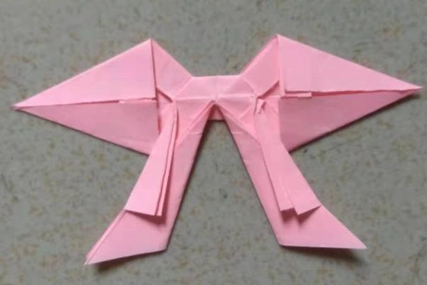 3、将两边的纸张拉开折叠,翻过来后就是漂亮的蝴蝶结啦!