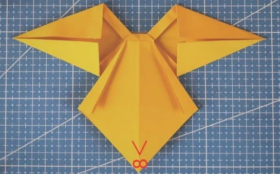 14.同样的方式折叠右侧三角形纸,形成“八”字形折纸。