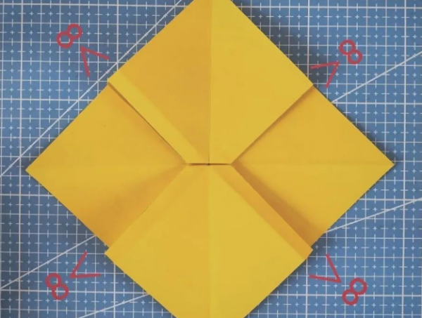 6.展开纸张后,翻转纸张,纸张中心得到一个凸出的正方形。