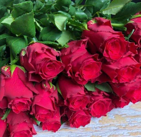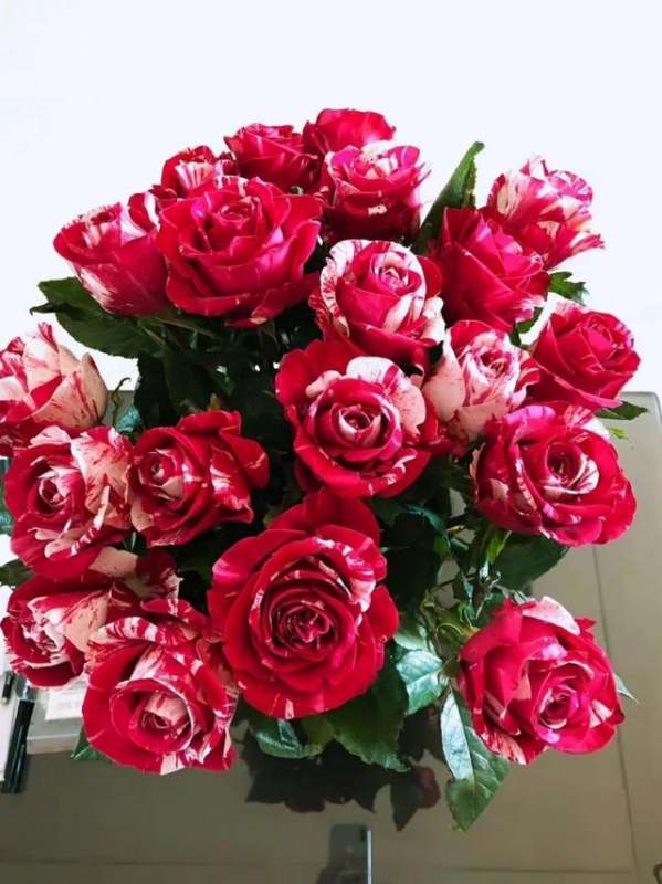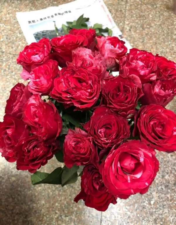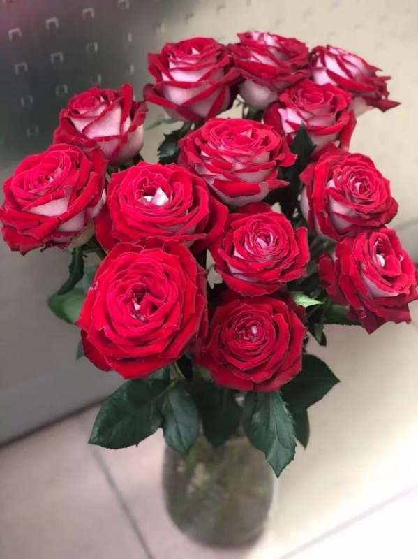 法国红,也叫法兰西,花期长,超级耐养,超级耐运输的红玫瑰,开花独特的波浪边!品种原因,花枝不是很直,但是有韧性。