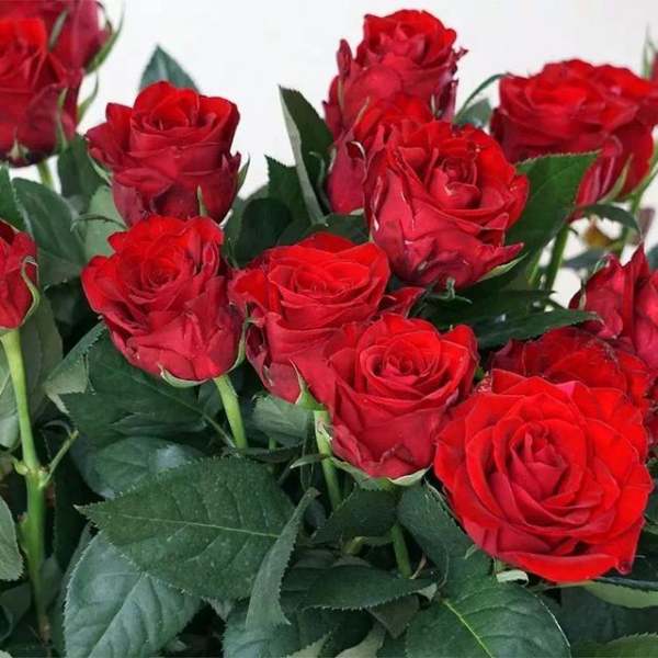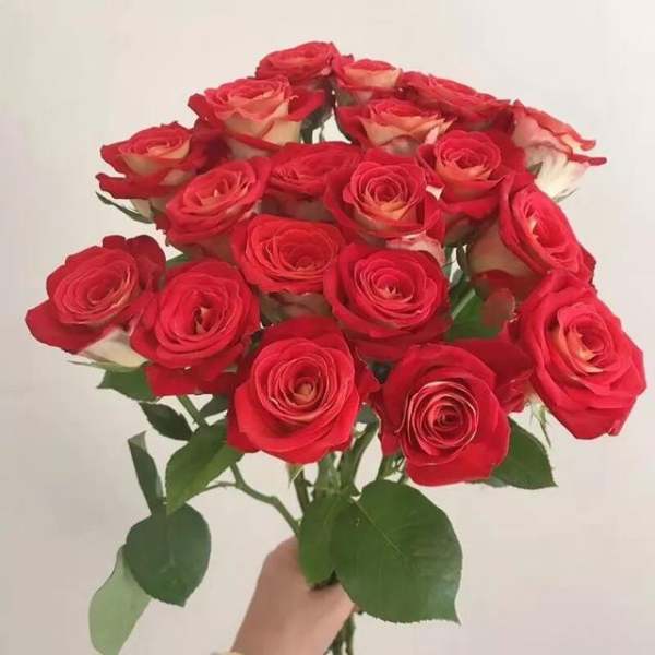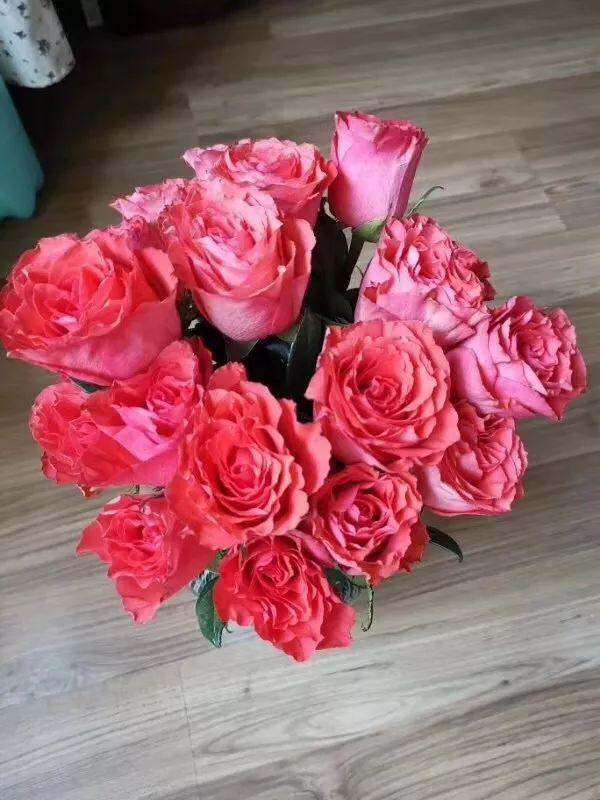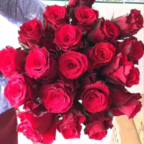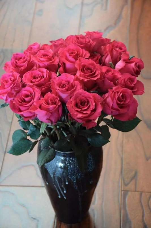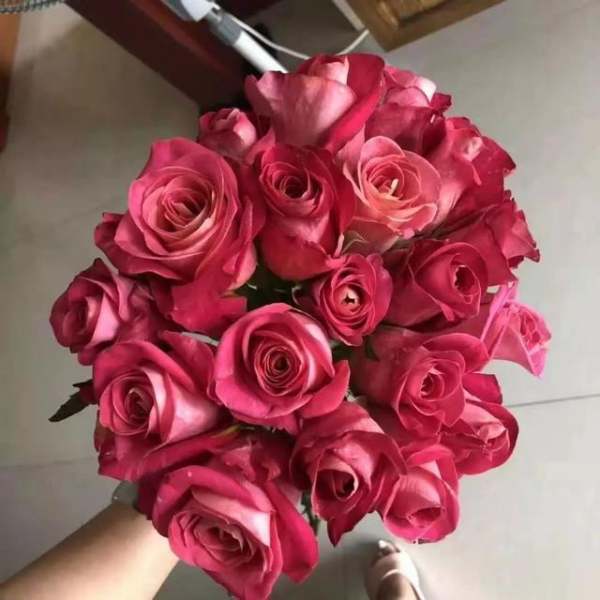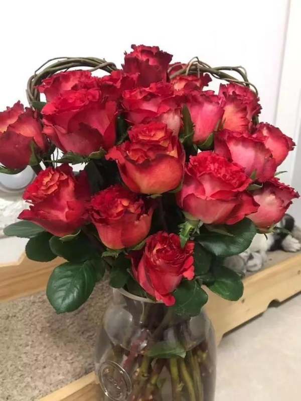 市面上常见的红玫瑰,大多为卡罗拉,也叫超玫,花头大,花型好,是花店最常用的玫瑰之一,但花中刺最多也是它的一大缺点。