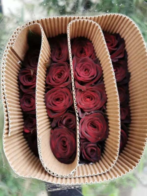 高原红颜色偏黑,饱满厚实的层层花瓣,细短浓密的丝丝毛绒,花期较长,花型规则,开放后也很整齐,但是花头相对较小。枝干粗壮,叶多刺少,处理起来方便快捷。