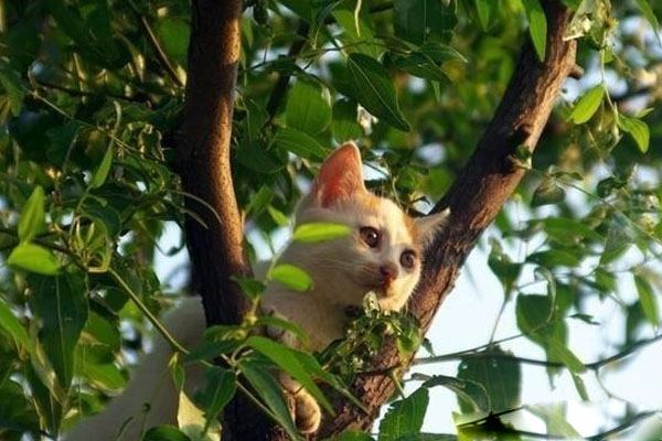 所有动、植物都有它的生存之道、延展之能,这是世界延续进化的自然规律。单说猫、为啥知道自己身临高处?凭我这个粗人的理解、应该是风力、气流来判断自己身处危险的境地,加上自己从未来过的异国它乡,所以它暂时不知所措,内心深处恐惧、害怕一失足成千古恨,猫的本身行动敏捷,弹跳自如,狗都不是它的下饭菜,小猫打赢大狗易如反掌、小菜一碟。在一个陌生的环境下,需要冷静片刻、专用探测系统(胡须)会自然感知所处的周边环境对己身的利弊,再由脑中心控制室发出指令,启动四肢往安全而可靠的一面急驰而去,离开这个是非之地,不可久留的地方。小猫咪被困10米高的树4天,最后是如何将其救下的?