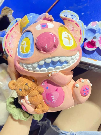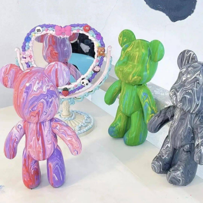 流体熊是将潮流公仔熊 和流体艺术画的结合 素体的暴力熊 腮唇部微鼓,鼻部小圆润突起 脖颈可以360°任意转动 另外还有芝麻街、独角兽款式。