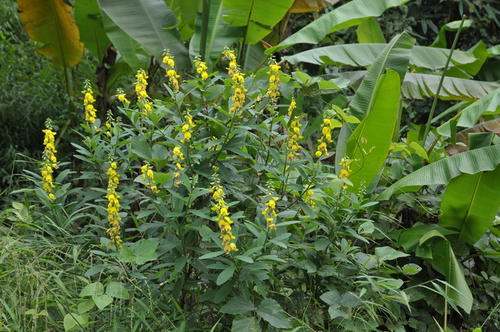 3月播种的猪屎豆最早在6月发现花芽,花蕾发育不良,有的花蕾出现黄化,无法正常开花结果。