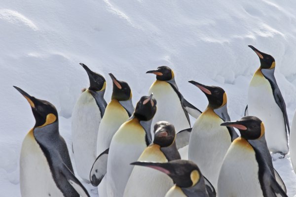 尽管长得很像,体型近似,甚至名字也差不多,但王企鹅和帝企鹅却几乎不会相遇。王企鹅大多分布在远离南极的周边岛屿上,帝企鹅则是极少数全生命周期都在南极大陆度过的企鹅,实际上,只有帝企鹅和阿德利企鹅会在南极大陆繁殖,而帝企鹅更是唯一一种会在南极大陆的极夜期间还待在南极的企鹅。