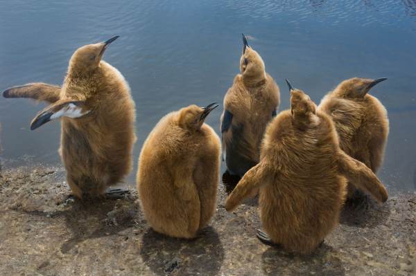 虽然王企鹅比帝企鹅要小一些,但它们的幼崽,却远远大于帝企鹅的幼崽,而且王企鹅的幼崽身上也没有羽毛颜色的变化,而是长得活像一个圆鼓鼓的猕猴桃……