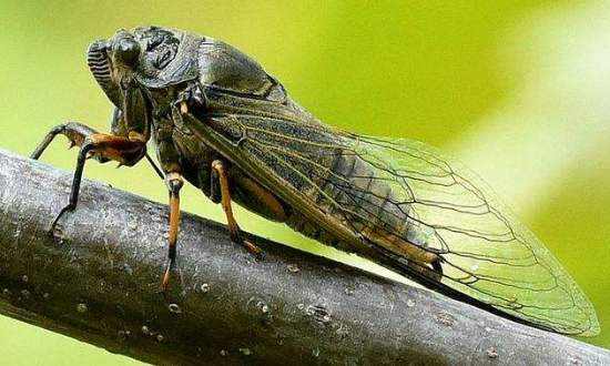4、蝉:体长2至5公分,有两对膜翅,翅膀很硬,复眼突出,单眼有3个。习性:蝉的幼虫生活在土中,成虫羽化后,依靠吸食树木汁液为食。