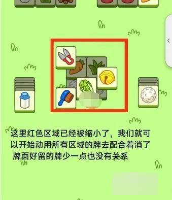 当场面上没有能够达成3消的卡牌时,玩家可以观察位于下层暂时无法使用的卡牌,在点击上层卡牌后,下方的卡牌便可以使用了,这样玩家就能消除一组白菜,但是在使用这个技巧时要避免手中无用卡牌堆积起来最终导致游戏失败。