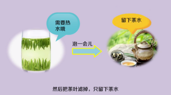 1、冲茶水:把茶叶放进杯子,热水冲茶,盖上盖子泡一会儿,把茶叶滤掉,只留下茶水。
