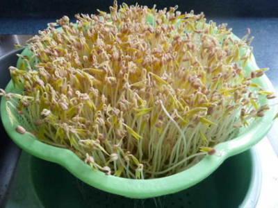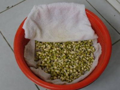 3、装入容器中进行培育:可将育芽的容器放在空气稳定处,不应放于通风的过道或露天的场所。同时,装入豆子后,要在豆子上面盖上纱布(或者用草袋、麻袋、毛布)多层;盖密。容器可以选用木桶,底部有孔,底板可以活动,以便于取豆芽及清洗,容器要干净,覆盖物也必须用开水洗净方可用。