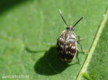 豆象Bruchuidae;bruchid;seed beetle 鞘翅目叶甲总科豆象科的通称。约1000种,分布于世界各地。中国有40多种。 体卵圆,中小型,少数种类较大。复眼大,前缘强烈凹入。触角11节,锯齿状,栉齿状。鞘翅毛有白色、棕色,常形成斑纹 ,末端截形 。幼虫为复变态,第1龄有长足,胸板有齿,经过一次蜕皮后,足部分或全部消失,形成不甚活泼的蠕虫型幼虫。如图:
