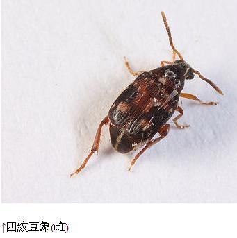 豆象 Bruchuidae;bruchid;seed beetle 鞘翅目叶甲总科豆象科的通称。约1000种,分布于世界各地。中国有40多种。 体卵圆,中小型,少数种类较大。复眼大,前缘强烈凹入。触角11节,锯齿状,栉齿状。鞘翅毛有白色、棕色,常形成斑纹 ,末端截形 。幼虫为复变态,第1龄有长足,胸板有齿,经过一次蜕皮后,足部分或全部消失,形成不甚活泼的蠕虫型幼虫。该科昆虫主要为害豆科植物的种子。大多数种类在野外、部分在仓库内生活。在气温较高的地区和仓库内能全年繁殖,为害虫,造成豆类大量损失。常见的有绿豆象和蚕豆象,分别为害绿豆、赤小豆、蚕豆和其他一些豆类。豌豆象是豌豆的重大害虫。有的种类是某些豆类的危险性害虫,如四纹豆象、菜豆象已列入国际检疫对象。