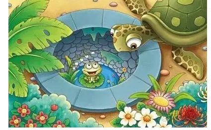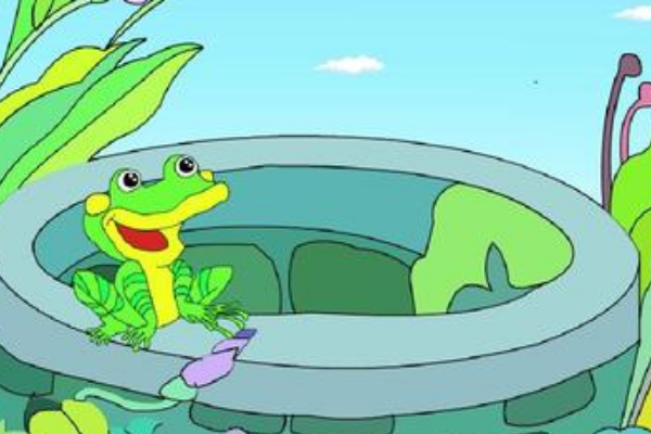 一口废井里住着一只青蛙。有一天,青蛙在井边碰上了一只从海里来的大龟。 青蛙就对海龟夸口说: “你看,我住在这里多快乐。