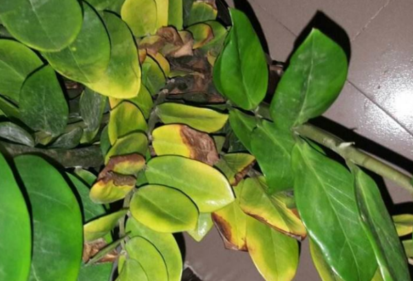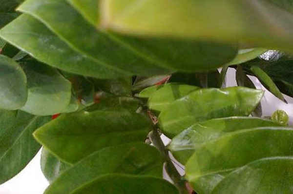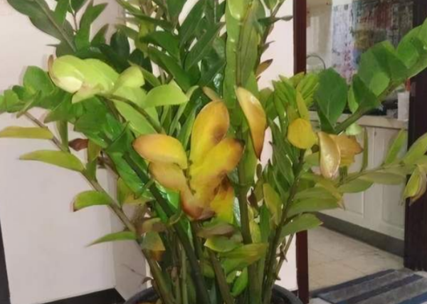 金钱树生长到一定的阶段,部分叶片老化,发黄。解决方法:无需特别处理,正常养护的情况下它会自动恢复。