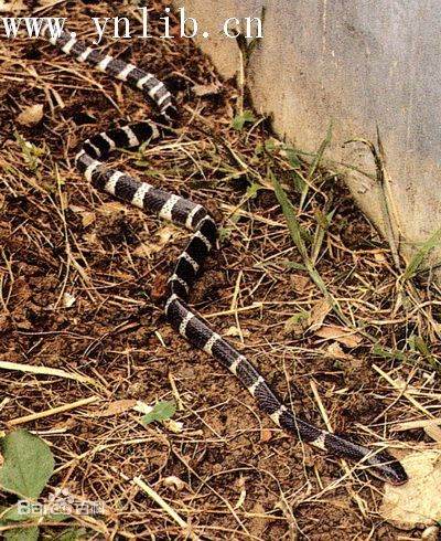 这是身上纹路是黑色和白色环状的蛇类,应该是银环蛇吧。银环蛇是一种毒性较强的毒蛇。银环蛇分布在中国安徽、浙江、江苏、江西、福建、台湾、湖北、湖南、广东、广西、海南、贵州、云南[6]中国之外分布于缅甸、越南北部等。