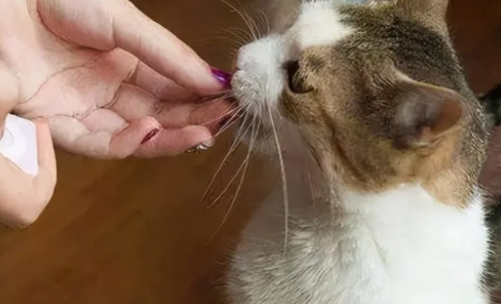 猫咪舔人的脸和手来表达爱意,如果猫信任你,它会主动舔你的脸和手,此时,主人还可以触摸猫的头部,这会让猫更快乐,有助于加深与猫的关系。
