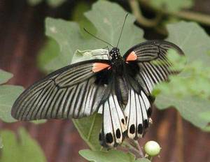 4、大孔雀蝶有异乎寻常的视觉,能感受普通视网膜感受不到的光线。雄大孔雀蝶身上有宽宽的触角,它似乎起着探测器的作用。
