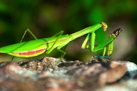 1、螳螂是肉食性昆虫,猎捕各类昆虫和小动物,在田间和林区能消灭不少害虫,因而是益虫;