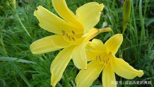 黄花菜花朵比较瘦长,花瓣较窄,花色嫩黄。