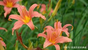 观赏用的萱草花则接近一些漏斗状百合,花色一般呈橘黄色,有的甚至接近红色。