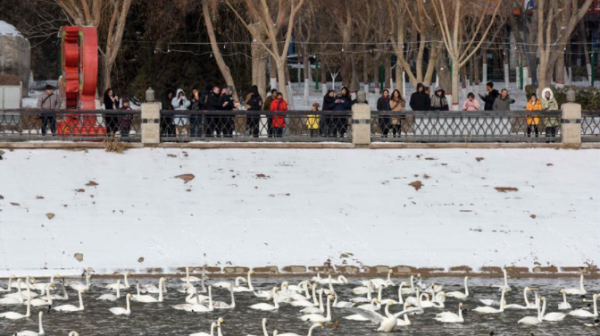 市园林处成立了天鹅总队,给天鹅投食,并定期巡逻,保护天鹅不受伤害。而市民也会不断地喂食馕饼。寒冷的冬季,天鹅在这里能吃饱,无人伤害他们,当然愿意在这里停留了。