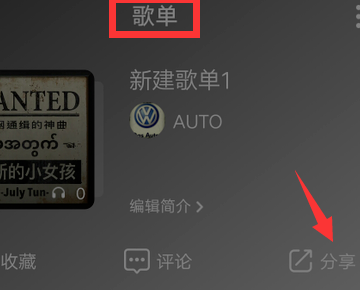 2、然后在打开的QQ音乐中,在自己的歌单里点击分享,选择音乐卡片,如下图所示。