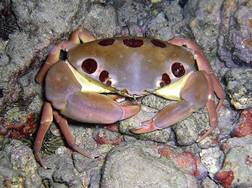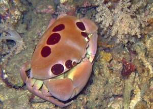 下图为 红斑瓢蟹 Carpilius maculatus (红斑双角蟹)