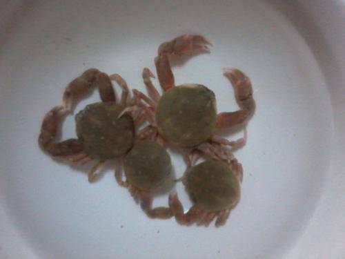 螃蜞(拼音pangqi),淡水产小型蟹类,形似小螃蟹,学名相手蟹。又称蟛蜞或蟛蚑(péngqí),磨蜞,农村习惯俗称嘟噜子、小蟹子等。头胸甲略呈方形,体宽2-3厘米,背呈青褐色,足无毛,大爪特粗,盖内有黄。雄性螯足较大,雌性螯足较小,螯足没毛,步足有毛。