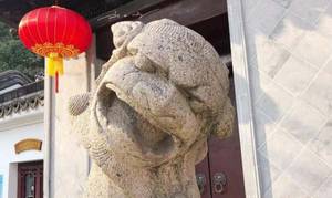 在古猗园大门的右侧,是一只咧开着大嘴的公狮子,身材干瘦,手里还玩着绣球,扭动身子笑嘻嘻的表情不禁让很多游客怀疑它到底能不能“镇宅”,这能吓唬谁呢?